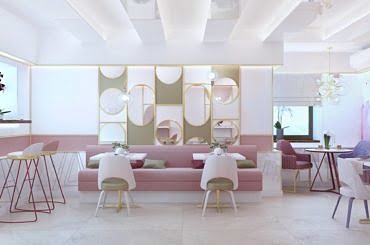 Так як фудкорд знаходиться посеред інших магазинів ТЦ, було вирішено додати яскраві кольори: MDF панелі на стіну, як акцент